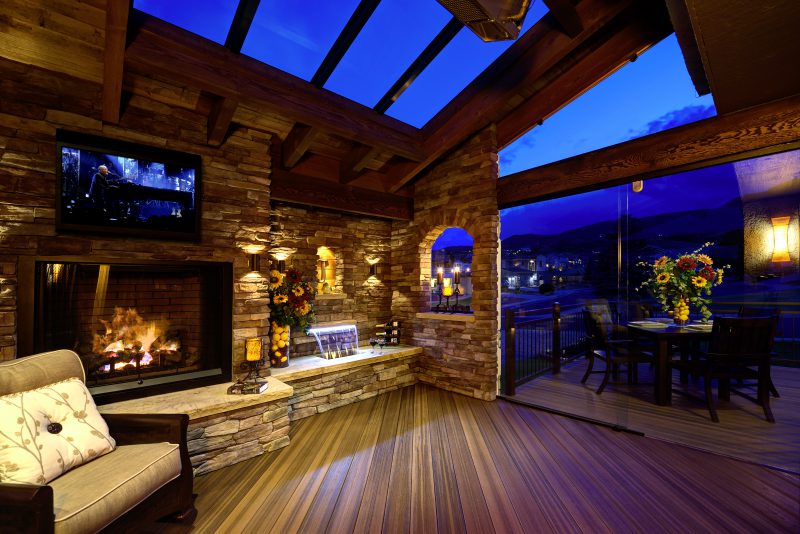 Like a screened-in porch, exterior lighting features for an outdoor living area are a relatively inexpensive addition that returns a lot of value to homeowners. They add pleasing ambiance to outdoor decking, and they make a space usable into the evening hours. Homeowners who enjoy hosting events and summer evenings outdoors find them especially valuable.
